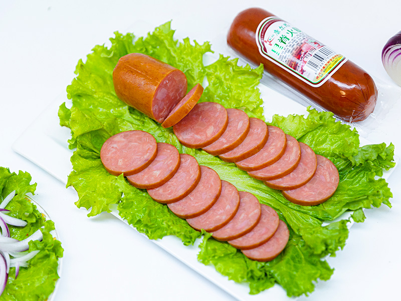 2.進(jìn)口纖維素腸衣灌裝,透氣性強(qiáng),更易煙熏入味,外觀顏色持久。