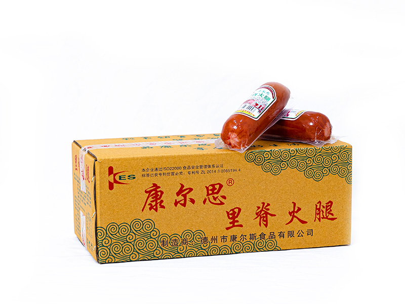 1.里脊火腿是我公司的拳頭產(chǎn)品,外觀商標(biāo)申請(qǐng)專利,可以與同類價(jià)位模仿產(chǎn)品比質(zhì)量。該產(chǎn)品采用上等雞腿肉等原料,經(jīng)過嚴(yán)格挑選精心制作而成,天然果木煙熏,色澤紅潤有食欲。